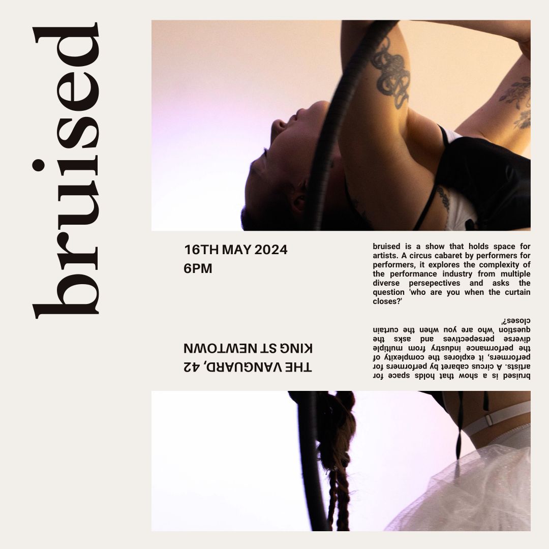 bruised (2024) was a circus variety show that invited artists to interrogate their relationships with performing in a one-night only showcase. It asked its performers and audience the simple question – “who are you when the curtain closes?”